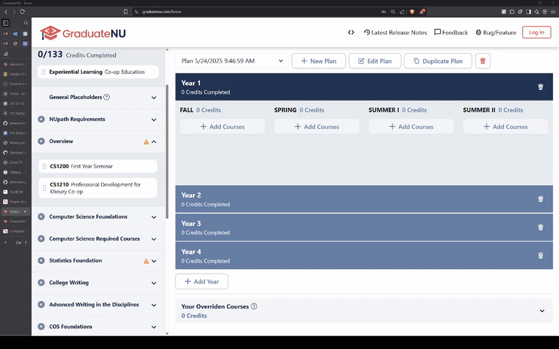 Ready to experience degree planning that actually works? Check out GraduateNU or our sister project SearchNU. Found a bug or have feedback? Let me know at wang.yicheng4@northeastern.edu or fill out our feedback form.